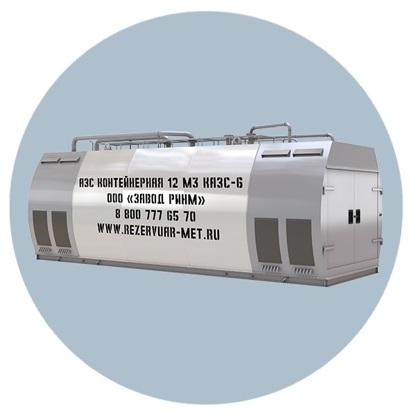 Контейнерная 12 м3 КАЗС-6 представляет собой автозаправочную станцию, предназначенную для заправки автотранспорта жидким топливом. КАЗС рассчитана на наземное расположение и размещение топливораздаточной колонки в контейнере хранения топлива. Автозаправочная станция контейнерного типа может использоваться как заправки автотранспорта на предприятии, так и для коммерческих целей.