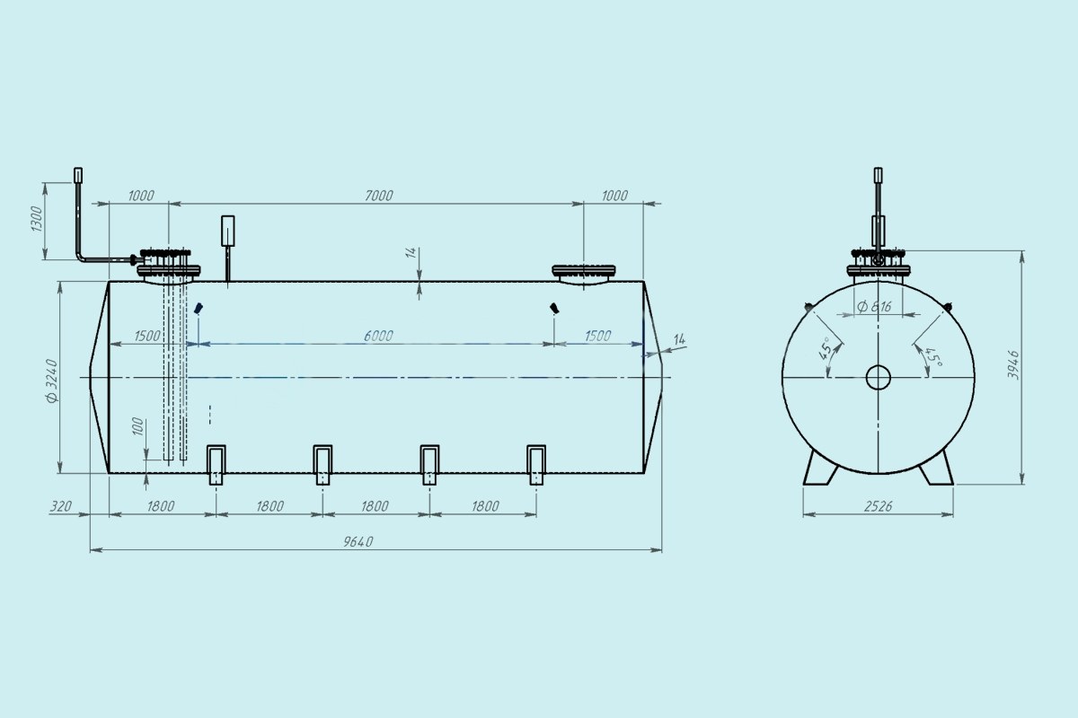Изготовитель предлагает готовые решения, исполняемые по шаблонам и нормам для горизонтальных резервуаров, либо соблюдение требуемых характеристик с размерами, необходимыми заказчику.
