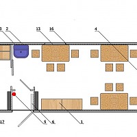 Организация стандартных вариантов модульных столовых обычно предполагает использование нескольких помещений, располагающихся на территории 8 на 2,5 метров: