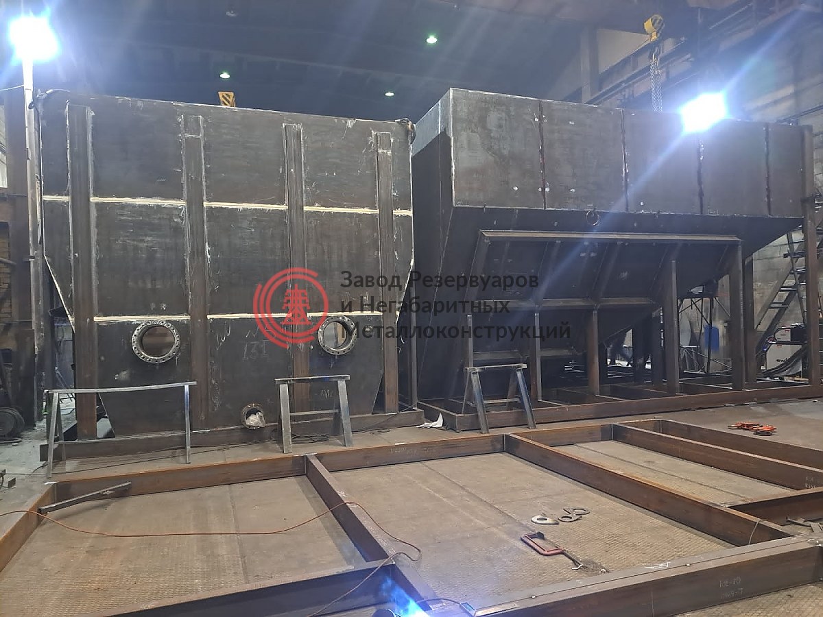 Это прямоугольный металлический бак, сваренный из стального листового проката. Для повышения прочности конструкции углы и стенки усилены уголком. ЗУМПФ может быть открытого и закрытого типа. Открытые баки используются в тех случаях, когда их заполнение осуществляется с использованием экскаватора или погрузчика.